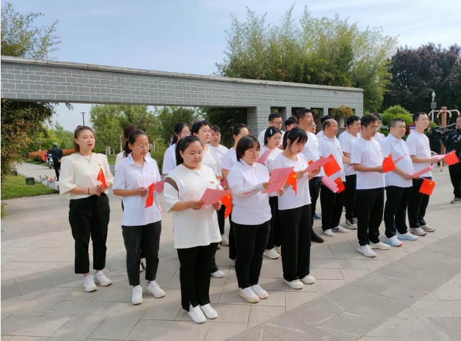 共唱《歌唱祖國》;第二項由中心黨委機關(guān)第三黨支部書記閻素琴帶領(lǐng)大家重溫入黨誓詞;第三項由各基層黨組織表演節(jié)目,我支部合唱的《強軍戰(zhàn)歌》,唱出了我們黨和祖國領(lǐng)贊新時代黨員的新風(fēng)貌;第四項中心黨委領(lǐng)導(dǎo)班子成員為大家發(fā)放“文明出行”“健康生活”倡議書;最后一項中心黨委書記、主任郭鋒作重要講話,宣布健步走活動開始。